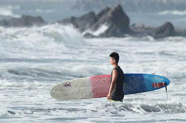 和宜蘭大多數浪點一樣,在這裡衝浪,等浪時可以欣賞到美麗的龜島景色。這裡也有很多衝浪店。週末時雙獅遊客也不少。