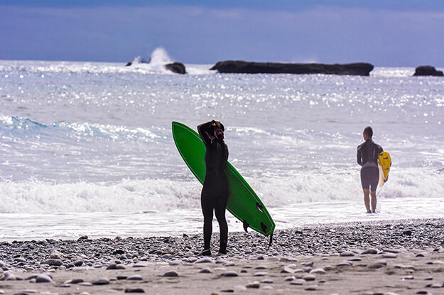 磯崎有兩個衝浪地點,一個位於「磯崎海濱遊憩區」附近,另一個則在「舊磯崎國小的舊址」附近。後者的浪頭較多,通常有更多機會追到左跑浪和右跑浪。然而,由於這是一個長而無遮蔽的海灘,強風常常會影響浪的質量,因此非常建議您在出發前再次查看浪況報告。海床主要由鵝卵石和一些巨石組成,靠近淺灘時要比較快收板子,以確保您的人身安全,同時避免衝浪板受傷!